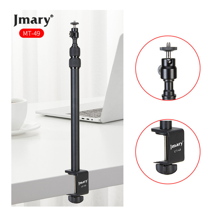 پایه نگهدارنده رومیزی Jmary MT-49 یک انتخاب ایدهآل برای کسانی است که میخواهند در عکاسی، فیلمبرداری و تولید محتوا به بیشترین کیفیت و راحتی دست پیدا کنند. این پایه با طراحی مستحکم از آلیاژ آلومینیوم، قابلیت نصب آسان بر روی میز یا هر سطح مشابه با گیره C-Clamp، و تنظیم ارتفاع بین 38.5 تا 93.5 سانتیمتر، آزادی کامل در انتخاب زاویه و موقعیت را به شما میدهد. چه برای لایو استریم، آموزش آنلاین، ضبط ویدئو، نورپردازی یا عکاسی ماکرو باشد، Jmary MT-49 با قابلیت چرخش 360 درجه و اتصال استاندارد 1/4 اینچ، همراهی مطمئن و انعطافپذیر برای دوربین، موبایل یا تجهیزات نورپردازی شماست.