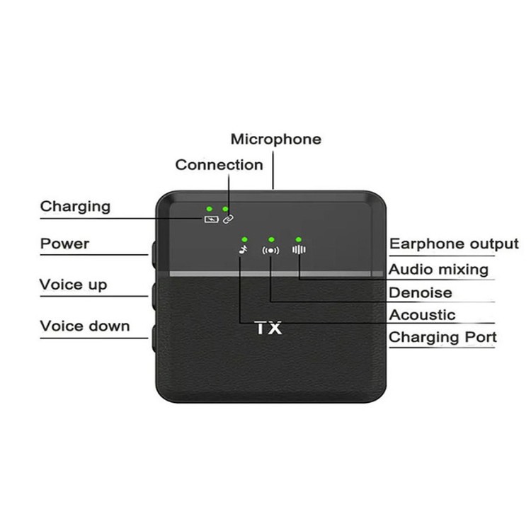 وقتی شما گیرنده و فرستنده رو روشن میکنید یک چراغ چشمگ زن سفید روی آنها روشن میشود که بعد از چند ثانیه که با هم مچ و ست میشود چراغ سفید دائم روشن می ماند و حالا قابل استفاده هست سپس فرستنده توسط رابط اتصال تایپ سی به گوشی وصل میشود و Tx یا گیرنده میکروفون به یقه وصل میشود . و وقتی شروع به ضبط ویدیو کنید صدا فقط از طریق فرستنده ضبط میشود و احتیاج به نصب هیچ برنامه و روشن کردن بلوتوث نیست.