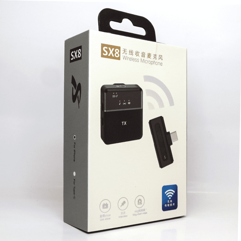 میکروفون یقه ای بی سیم کالای دیجیتال بسیار پر کاربرد است و برای ضبط صدا موقع تهیه برنامه و یا محتوا کاربرد های فراوانی داردو این میکروفون نیز به دلیل دارا بودن امکانات فراوانش طرفداران زیادی دارد. میکروفون یقه ای بی سیم SX8 ، متشکل از 1 میکروفن، یک دریافت کننده صدا با کانکتور USB تایپ C و یک درگاه AUX که توسط کابل به گوشی و دستگاه های سازگار متصل می شود و دارای یک کابل شارژ تایپ C برای شارژ می باشد.میکروفون یقه ای بی سیم SX8 سه کاره بلوتوثی وایرلس گجتی برای انتقال و ضبط صدا از راه دور است. از این میکرفن وایرلس بدون سیم می توانید برای ضبط صدا روی گوشی اندروید، و هر دستگاه موبایلی که از پورت USB-C پشتیبانی می کند استفاده کنید.