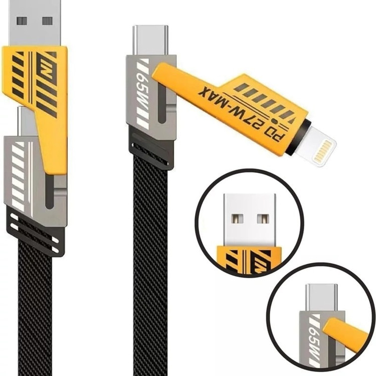 این کابل هوشمند و چندکاره، با قابلیت شارژ سریع Power Delivery تا 27 وات، بهترین گزینه برای شارژ دستگاههای آیفون و سایر گجتهای دارای پورت Lightning یا USB‑C است. با طراحی فلت و جمعوجور و طول 1.2 متری، این کابل بهراحتی در محیط کار یا منزل قرار میگیرد و فضای کمی اشغال میکند. روکش برزنتی مقاوم آن از گرهخوردن و پیچیدگی جلوگیری میکند و آن را به یک انتخاب ایدهآل برای استفاده روزمره تبدیل کرده است.