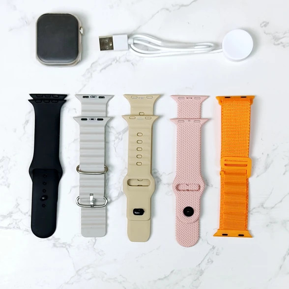 ساعت هوشمند + 7 عدد بند سیلیکونی + کابل شارژ وایرلس + دفترچه راهنما