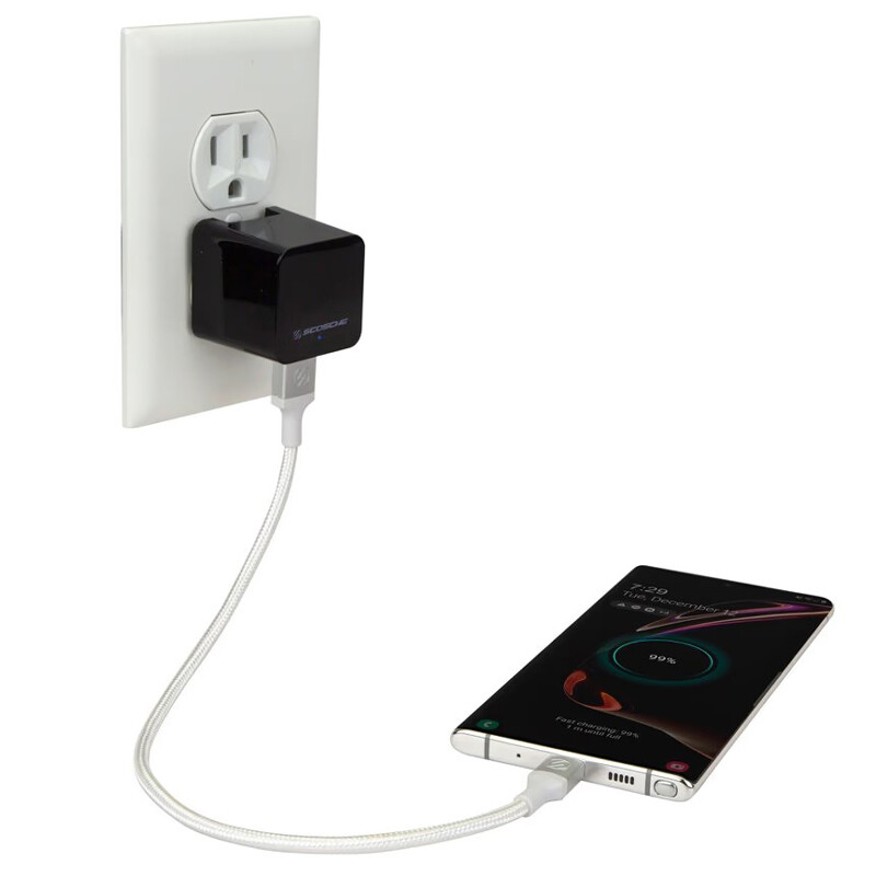 دارای نشانگر LED دو رنگ با قابلیت تغییر رنگ نور از آبی به سبز در حالت فست شارژ